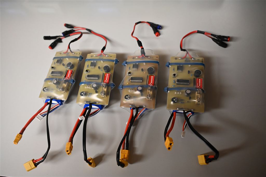 schauen Sie sich auch mal die Bastelei "NF-Fuchsjagd-Modul" hier auf dieser homepage an. Ab 2025 setze ich bei meinen Füchsen keine 12Volt Blei-Gel-Batterien mehr ein. Jetzt werden LiPo 3Zellen 11,1Volt verwendet. (Klick hier) und man sieht am Schluss der Seite eine Bastel-Anleitung der Unterspannungs-Abschaltung für LiPo-3S-11,1V Batterien. Unterhalb die 4stck. LiPo-Batterien mit Abschaltung welche bei der Fuchsjagd eingesetzt werden... ![]() |